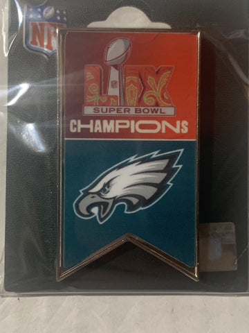 The Philadelphia Eagles Super Bowl LIX Champions Banner Pin is here to help you relive the glory of the Eagles’ championship win. Don’t miss out on the chance to own this iconic piece of fan merchandise!