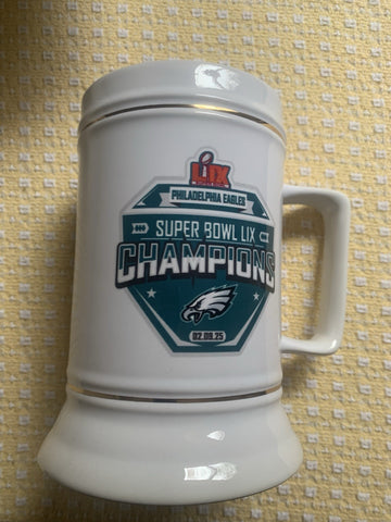Made from high-quality ceramic, this stein is designed not only for durability but also for style. The vibrant team colors and championship graphics proudly display your unwavering support for the Eagles. Whether you're hosting game day parties, enjoying a quiet evening at home, or adding to your sports memorabilia collection, this stein is the ultimate accessory.